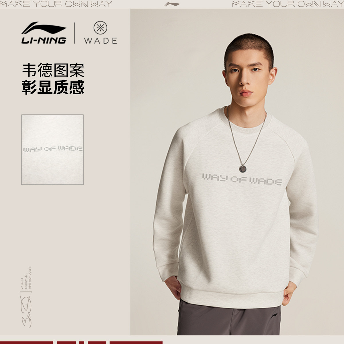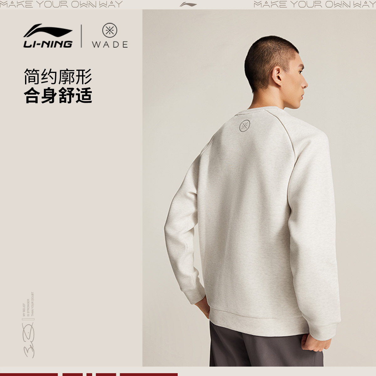 李宁卫衣男士韦德系列套头衫长袖圆领男装上衣春季针织运动服