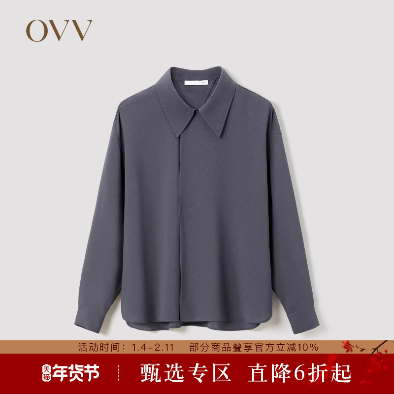 OVV秋冬女装醋酸翻领舒适干爽透气休闲长袖衬衫