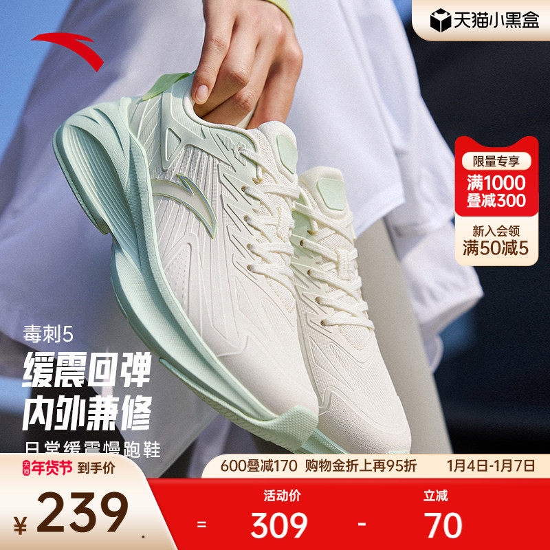 安踏毒刺5代丨减震软底防泼水跑步鞋女舒适运动鞋耐磨跳绳鞋子