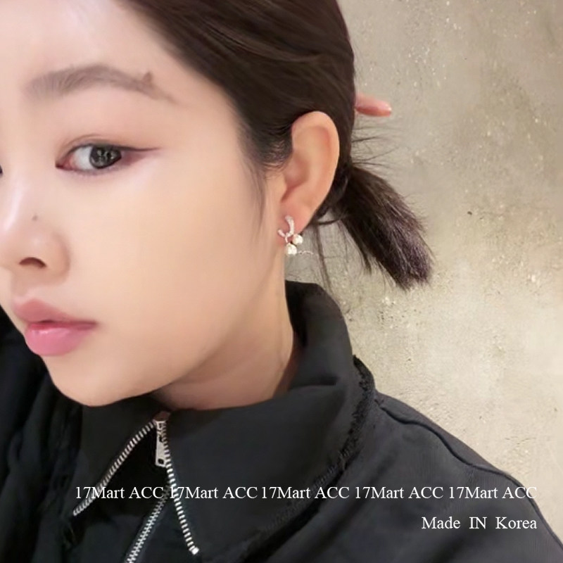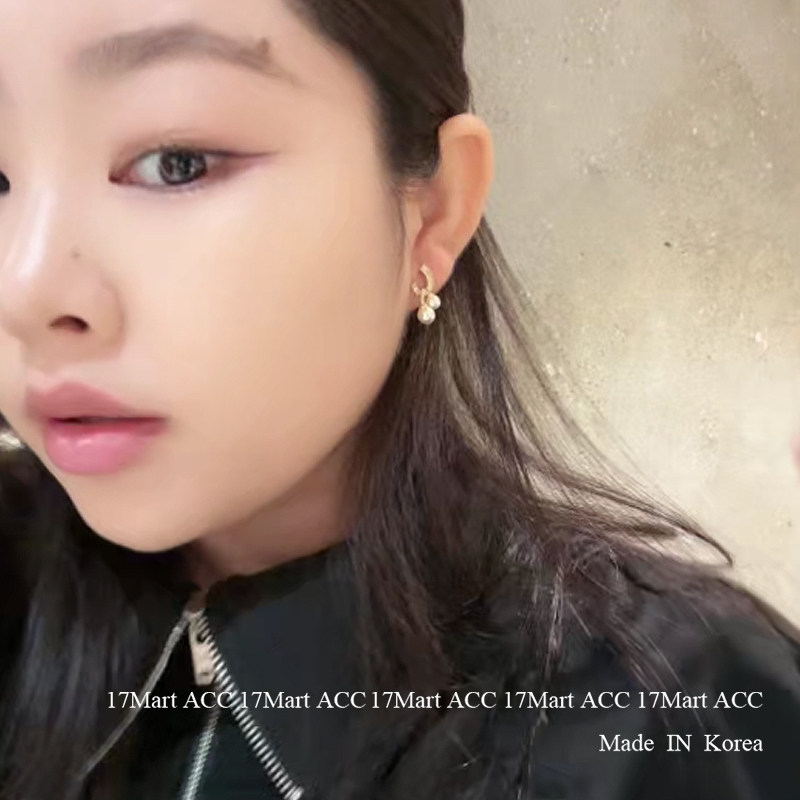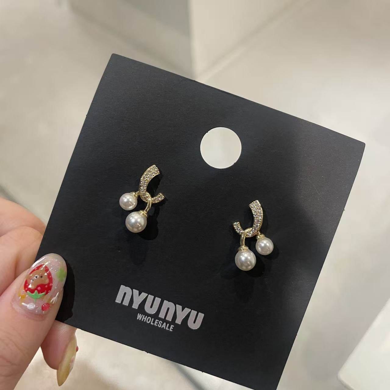 9.19韩国nyunyu饰品 交叉珍珠水钻简约耳钉