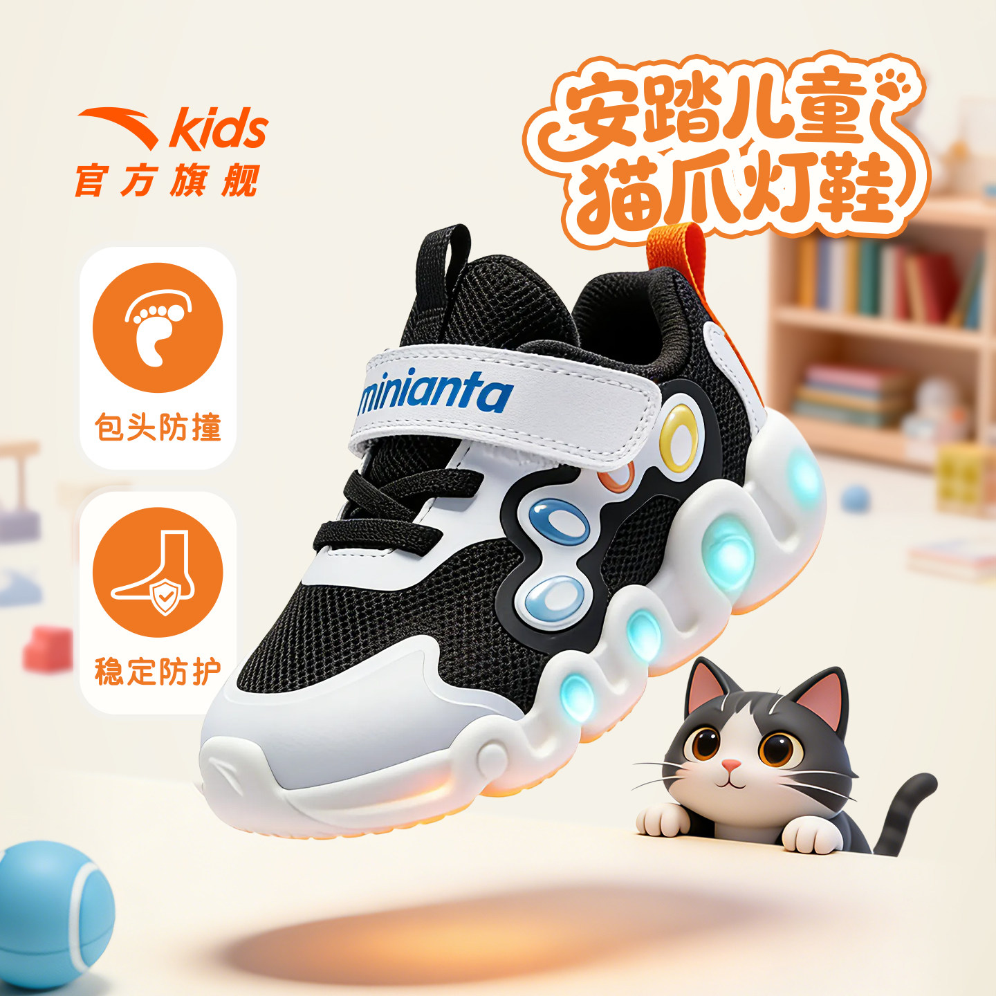 安踏学步鞋闪灯鞋秋冬新款男女宝宝运动鞋童趣发光鞋幼儿园鞋童鞋