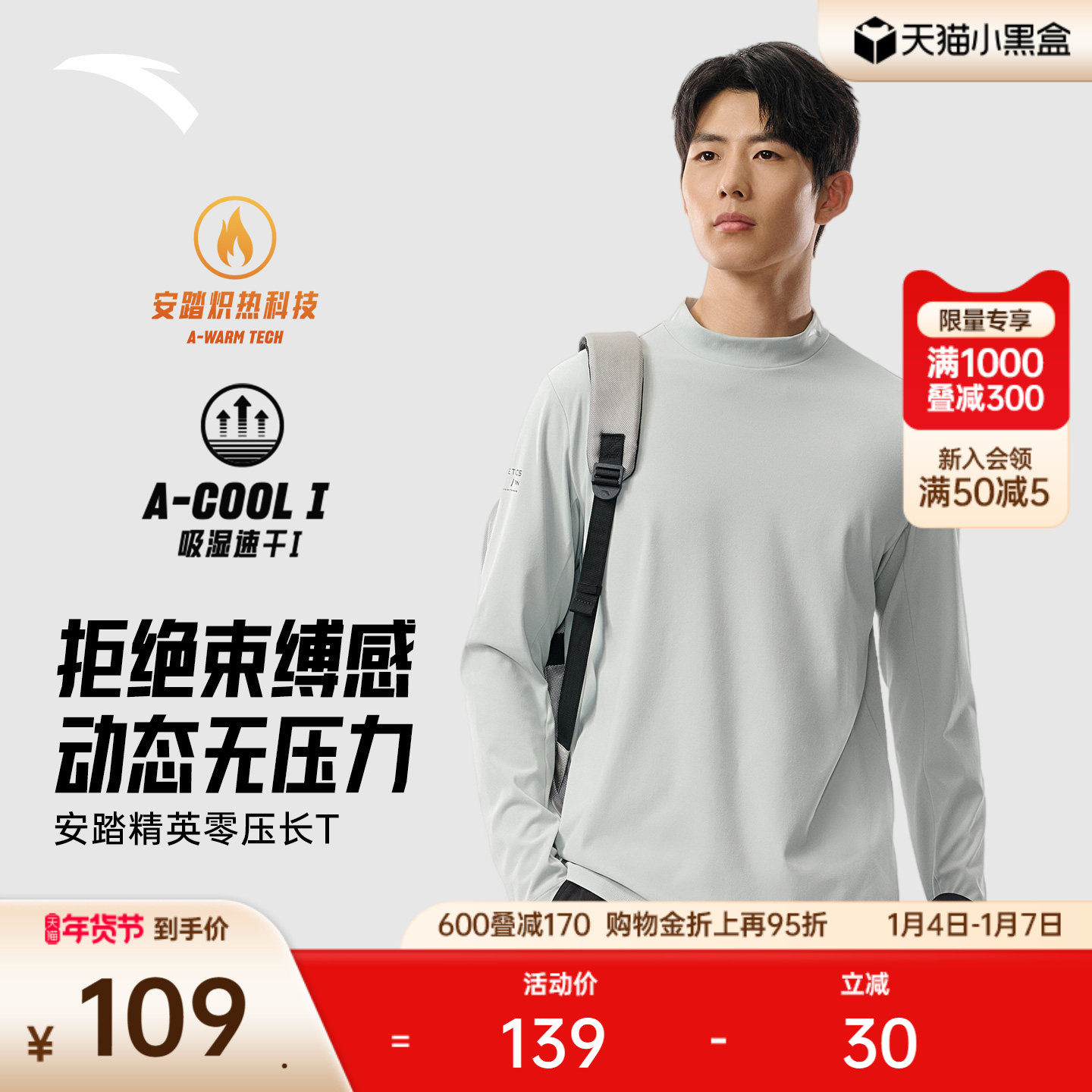 安踏长袖T恤加绒卫衣男冬季新款圆领套头衫百搭保暖速干运动上衣
