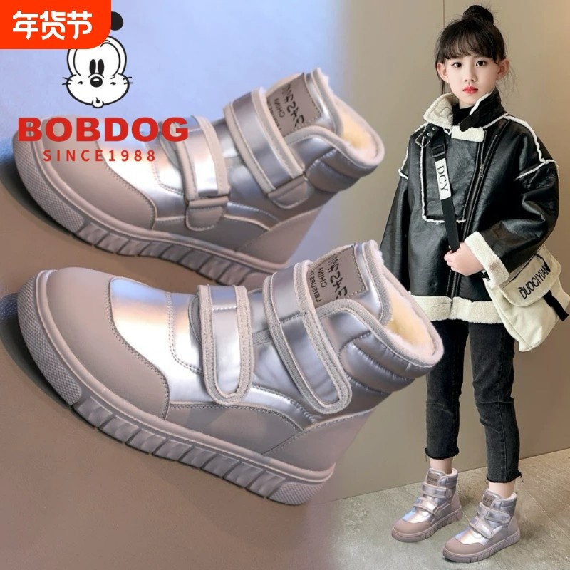 巴布豆女童雪地靴2025冬季新款防水儿童靴子大棉鞋学生短靴防滑
