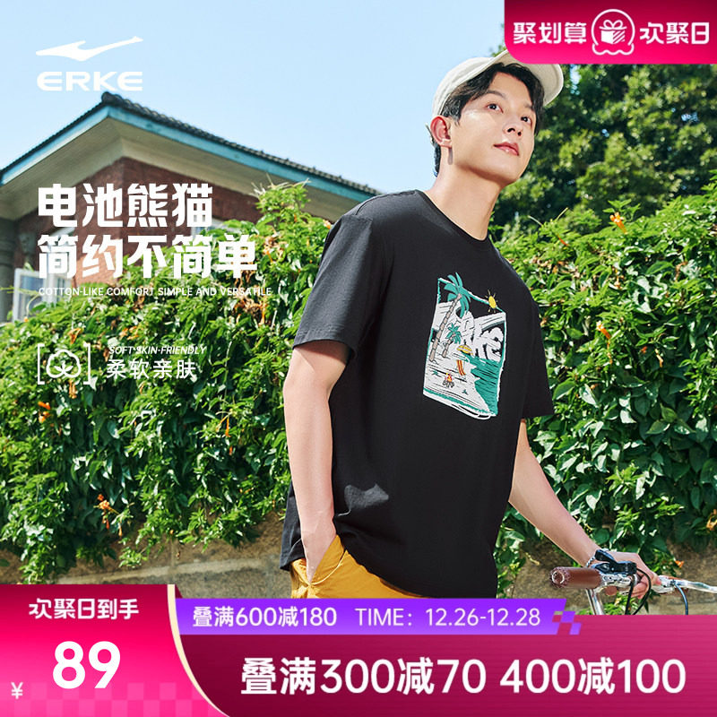 电池熊猫丨鸿星尔克t恤夏季新款男女情侣款纯棉透气宽松男士短袖