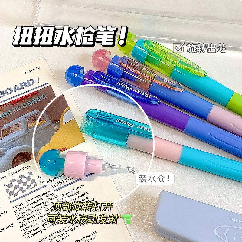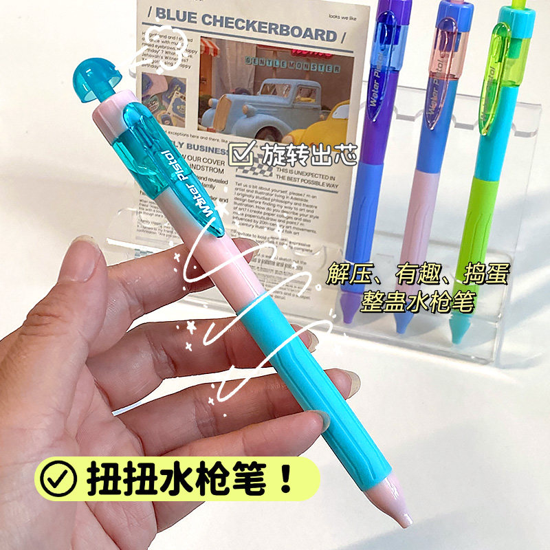 慕乐扭扭水枪旋转中性笔ins风高颜值创意解压速干CS头0.5mm黑笔学生考试用刷题笔水笔大容量顺滑透明文具用品