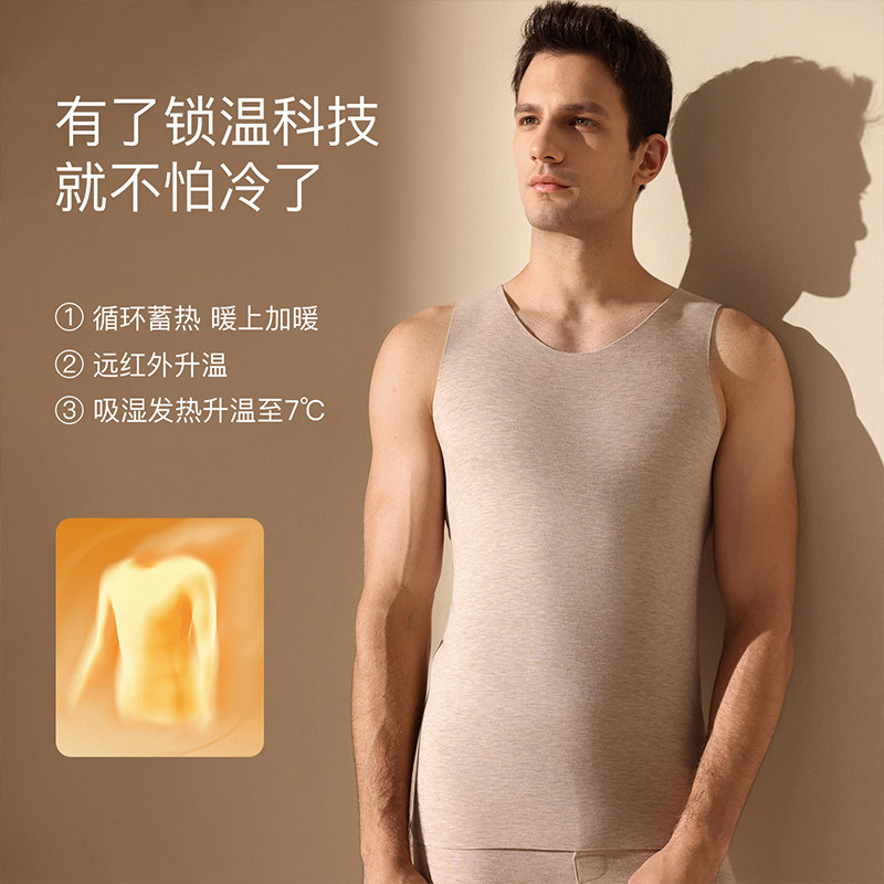 奥康羊毛蚕丝保暖内衣男绒德无痕发热加绒加厚内穿打底背心冬上衣
