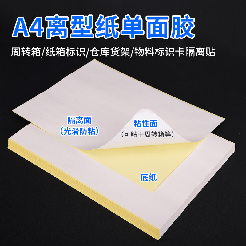 A4背胶离型纸防粘隔离纸单面带胶周转箱标签纸箱货架物料标识卡