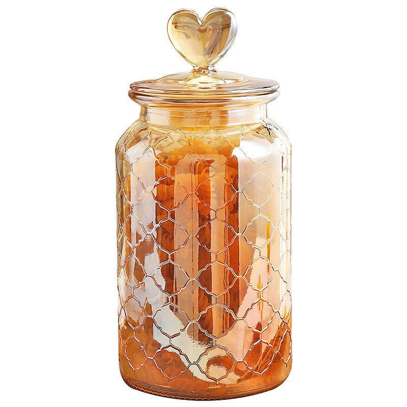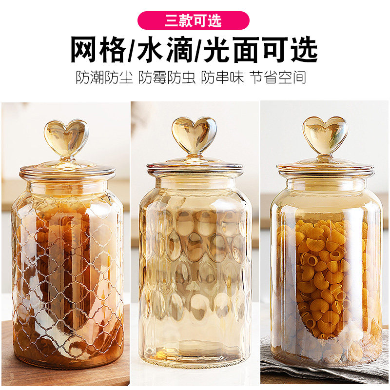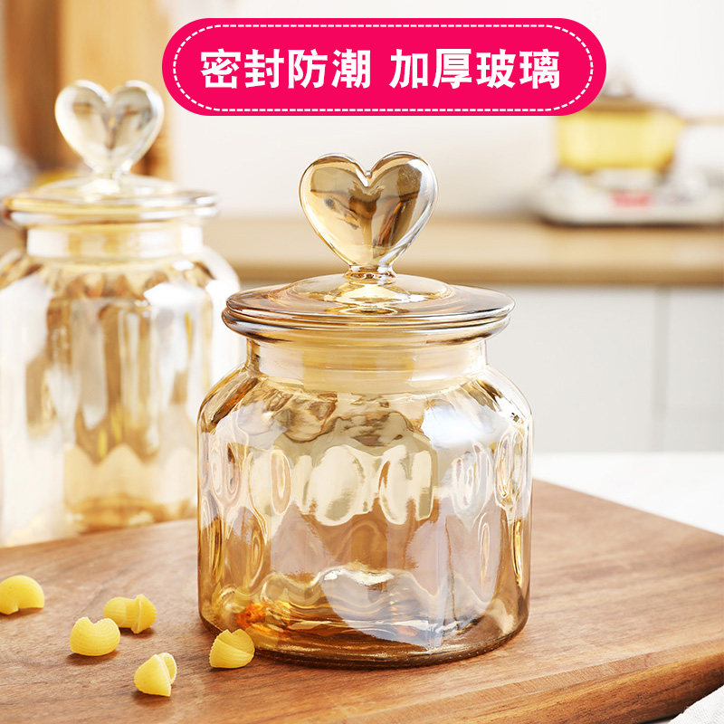 爱心琥珀色玻璃密封罐家用零食糖果罐厨房食品杂粮储物罐泡菜