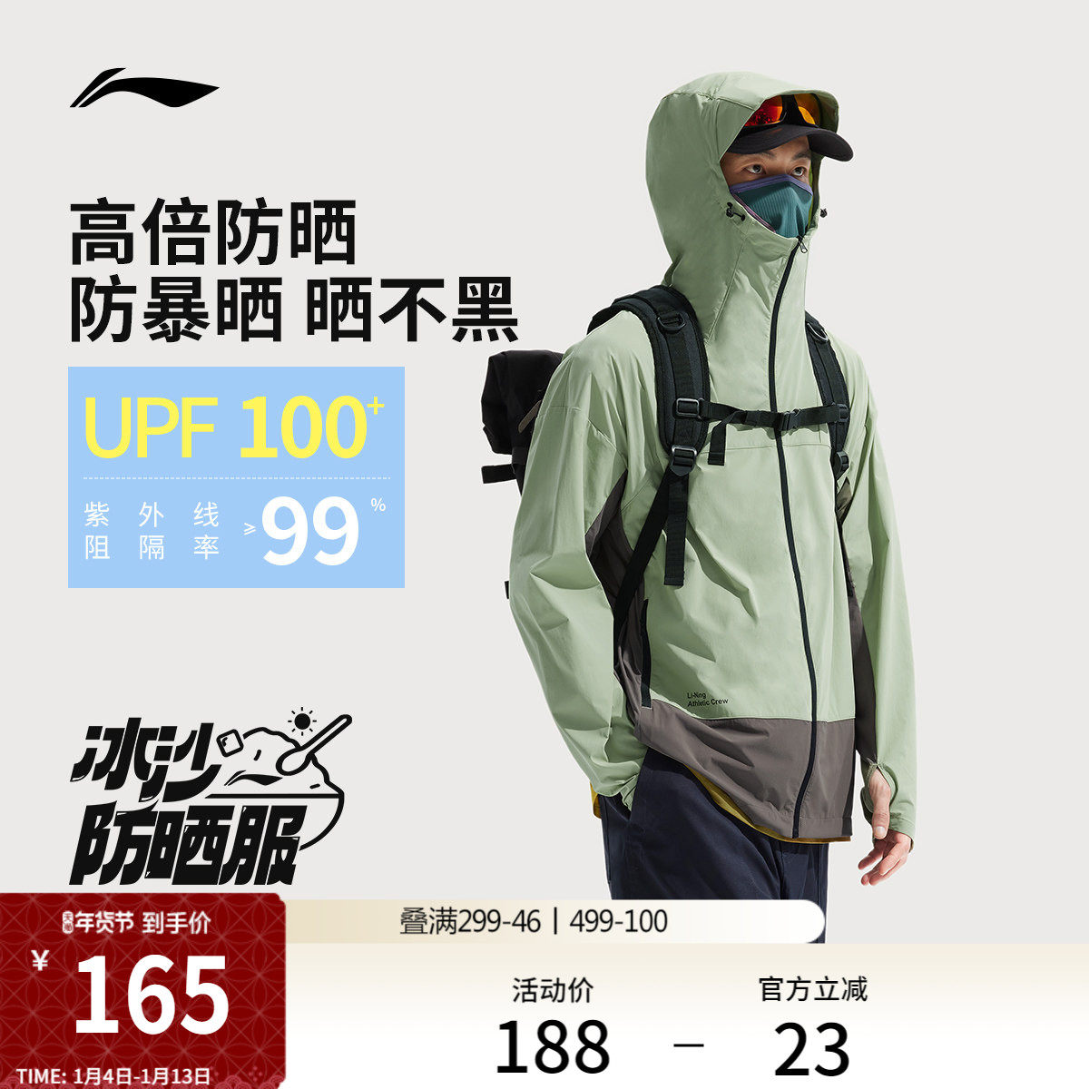 李宁防晒衣男夏新款轻户外登山皮肤衣透气冰丝轻薄外套 UPF100+
