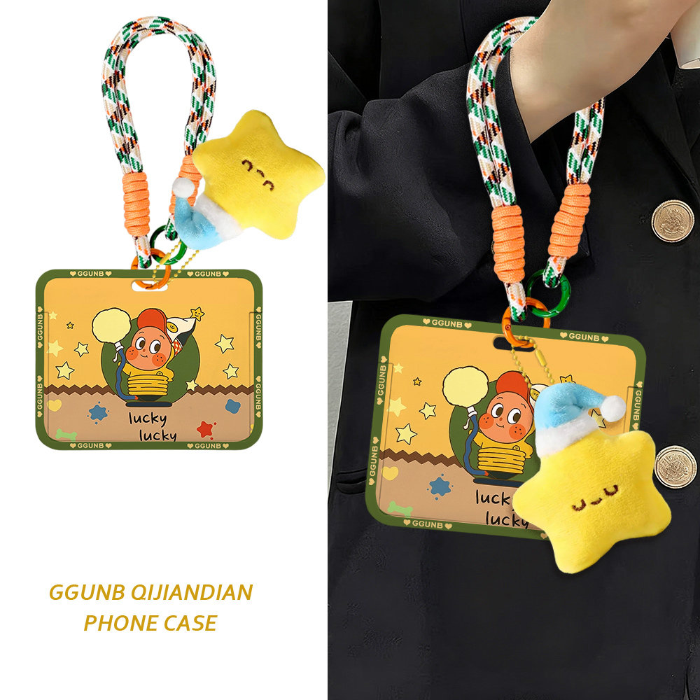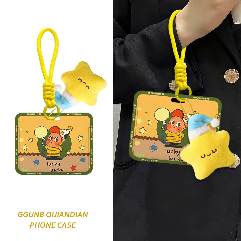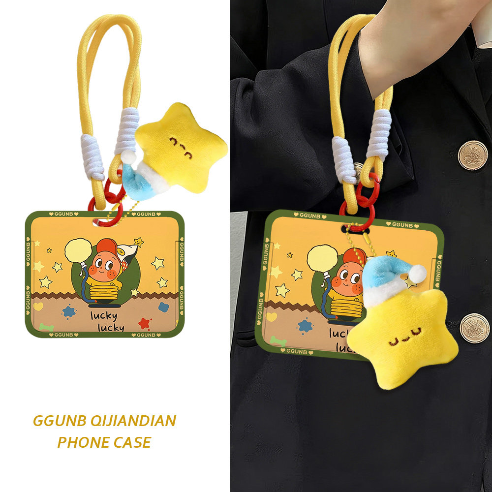 星星围着举牌小人感应卡套学生滑盖卡套饭卡地铁电瓶车小区卡包学生卡公交卡身份证件门禁卡工作证件套