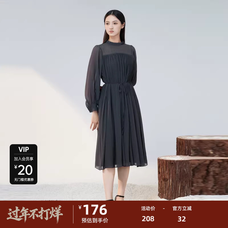 sdeer圣迪奥女装秋木耳边风琴褶收腰衬衫连衣裙S223Z124Z