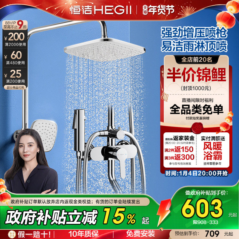 N恒洁淋浴花洒套装家用龙头明装增压淋雨喷头洗澡沐浴器卫生间