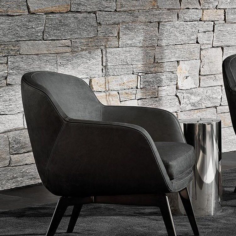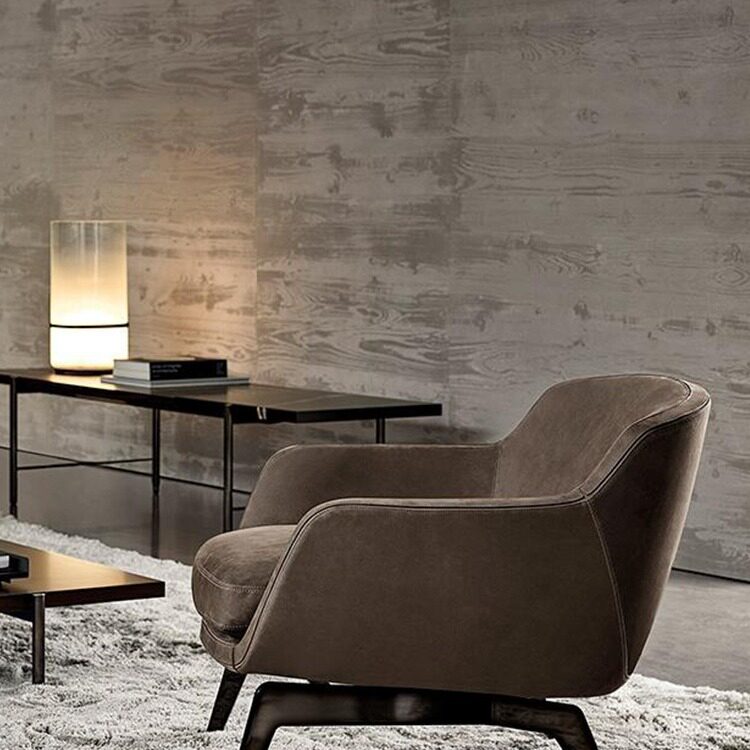 北欧单人沙发椅实木设计师pu皮布艺意式简约阳台休闲椅艺术踏躺椅
