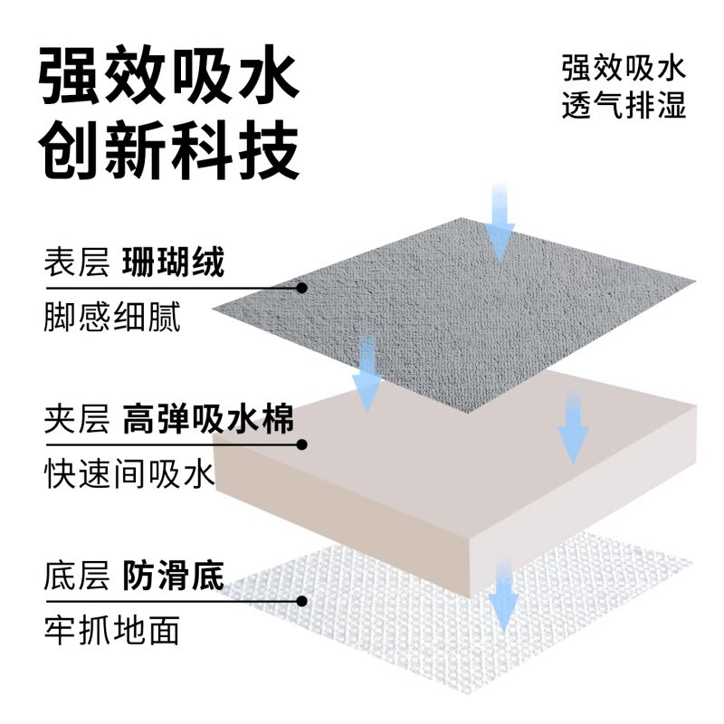柔软珊瑚绒加厚超强秒吸水防滑速干脚垫家用卫生间浴室厨房必备