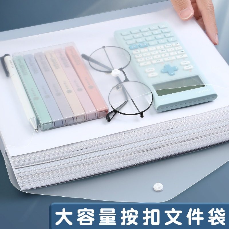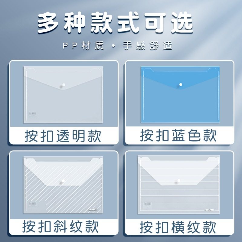 得力文件袋透明A4文件夹高颜值按扣学生试卷资料票据收纳袋补习袋美术袋办公用品纽扣档案包加厚防水考试袋子