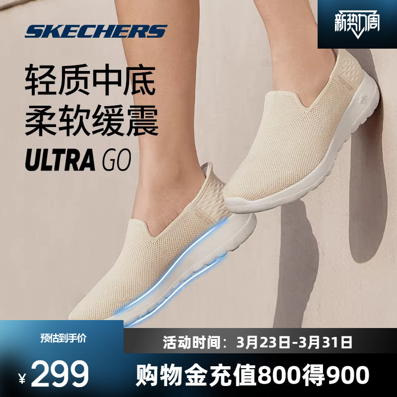 斯凯奇闪穿健步鞋女鞋轻质舒适柔软休闲一脚蹬运动鞋健步送妈妈
