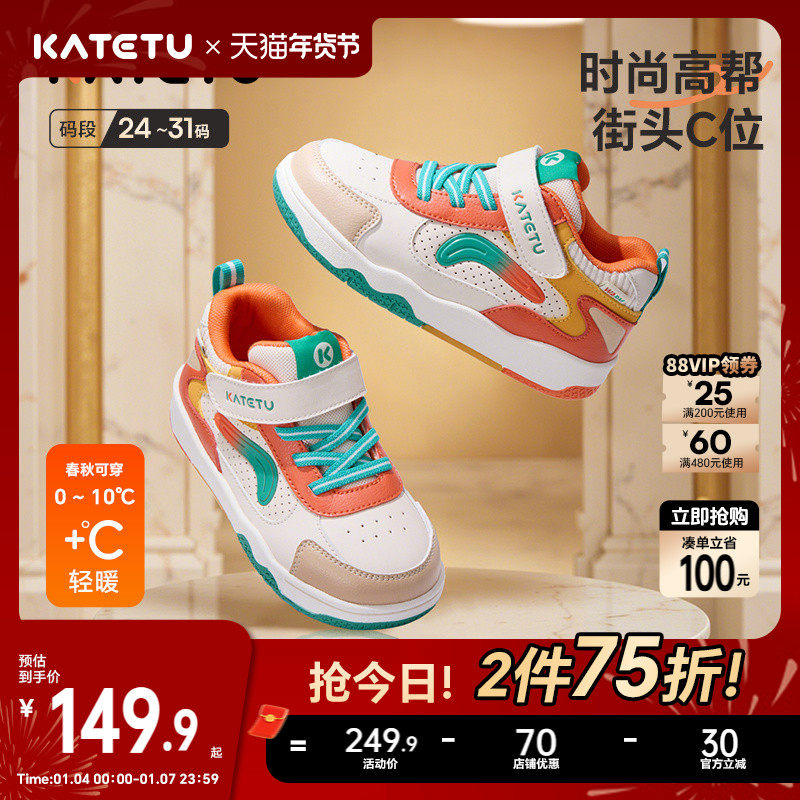 卡特兔童鞋高帮儿童板鞋男童2025秋冬新品防滑耐磨鞋子女童跑步鞋