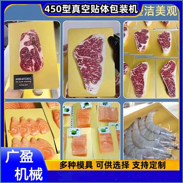 全自动真空贴体包装机牛排三文鱼封口包膜机 鲜肉熟食榴莲覆膜机