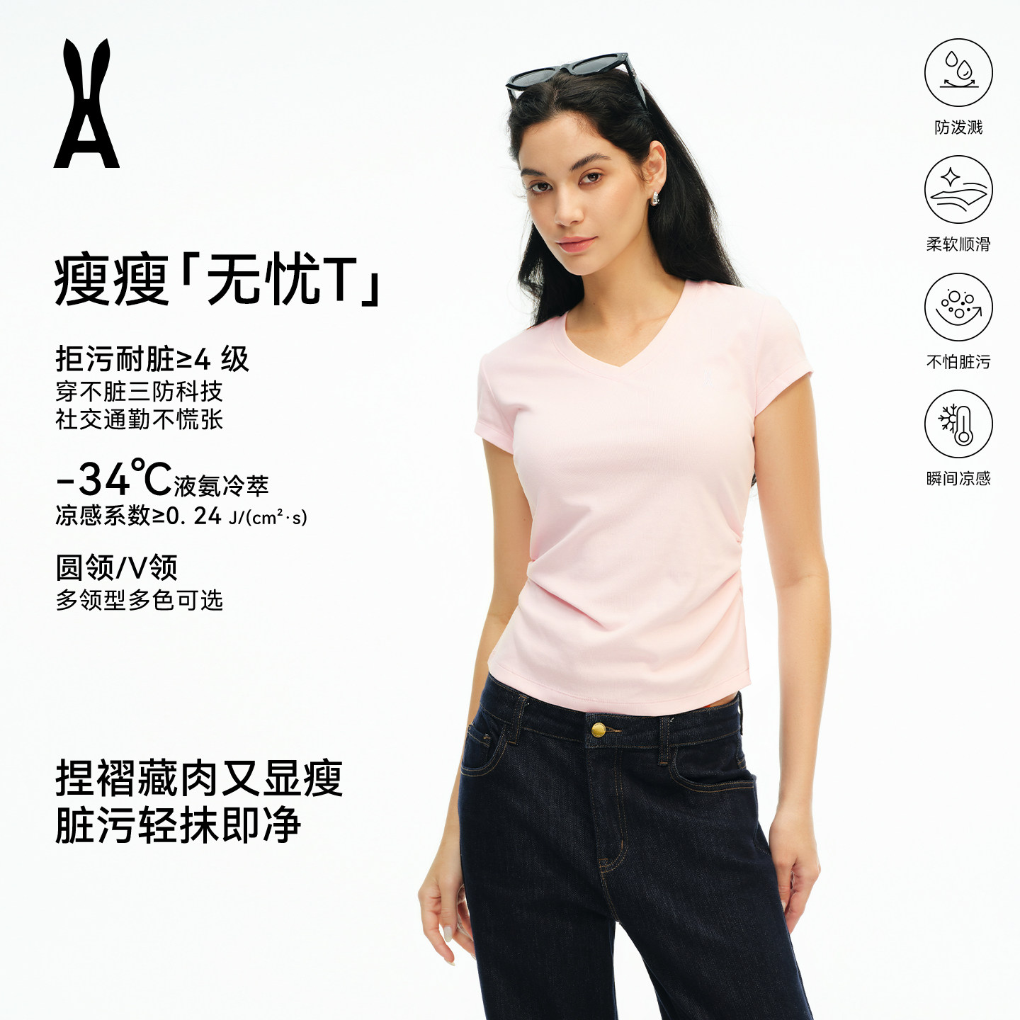 安欧兔【冰皮面膜瘦瘦T恤】4D玻尿酸|无忧三防 腰部收褶 凉感短袖