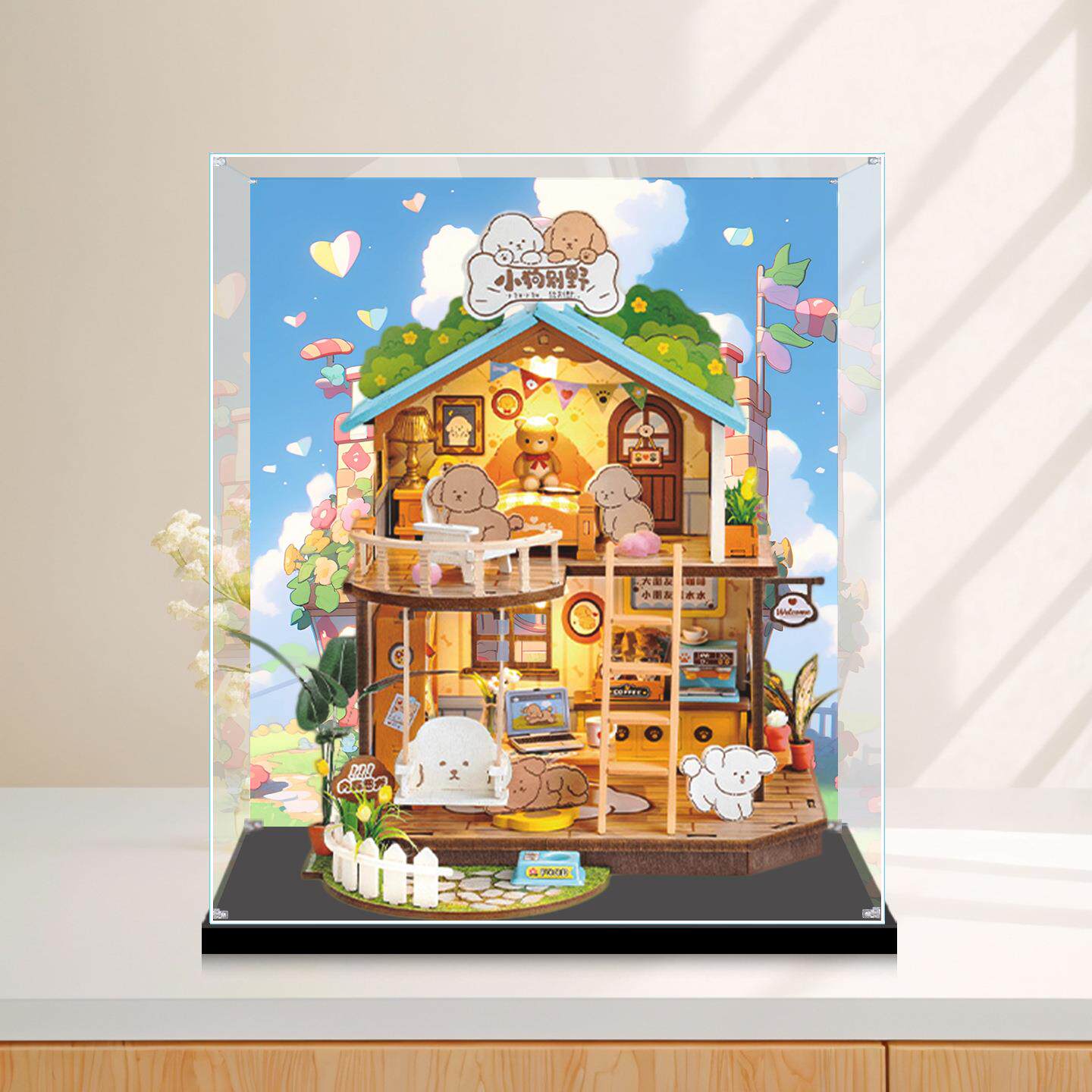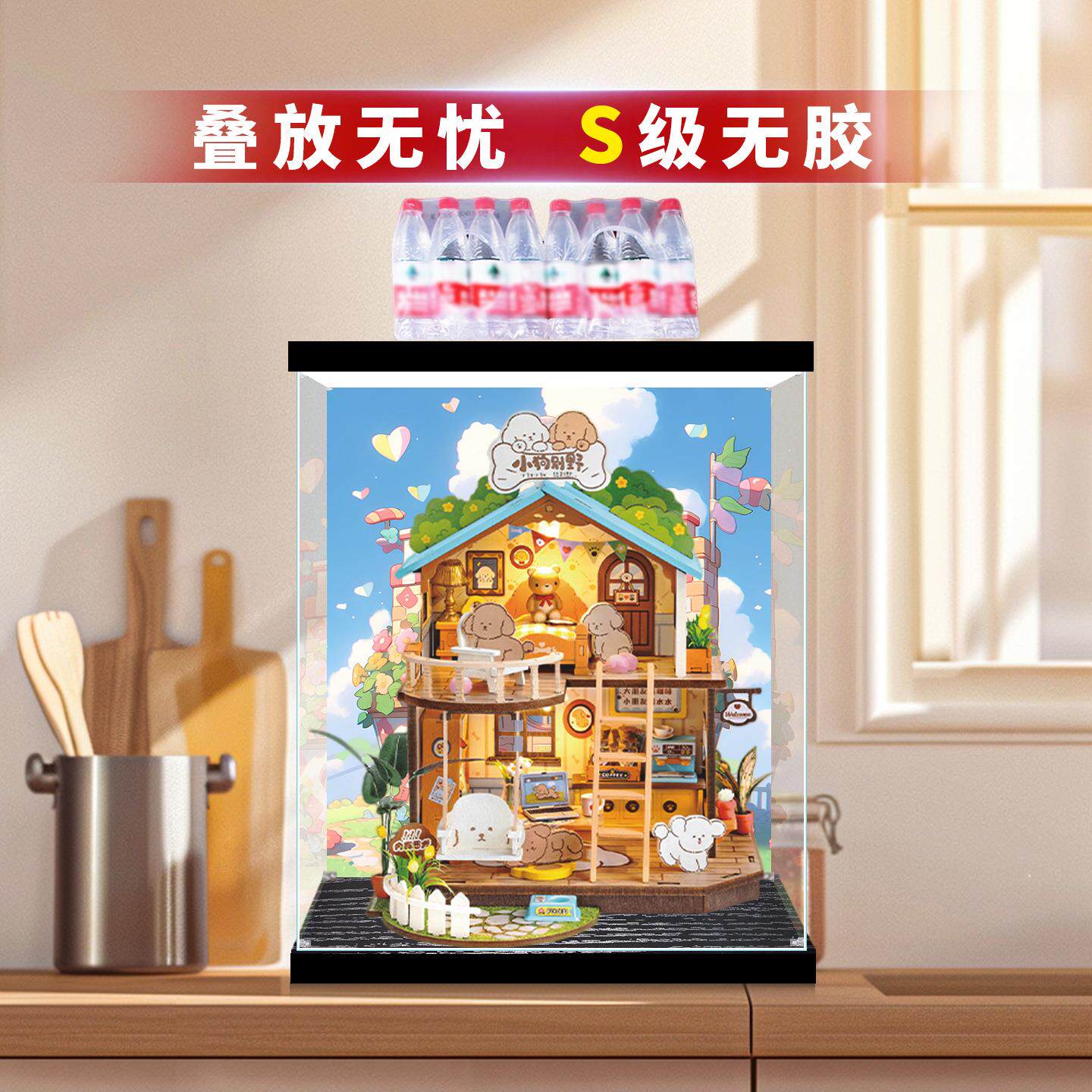 亚克力展示盒适用若来小狗小屋别墅透明防尘罩模玩积木收纳盒