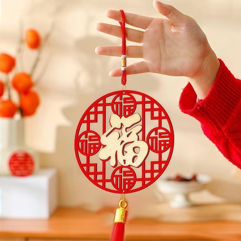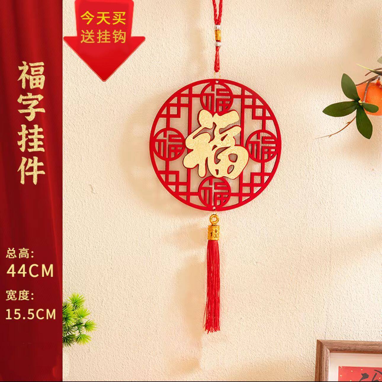 2026马年中式绒面镂空福字挂件客厅新年装饰春节过年福字挂件