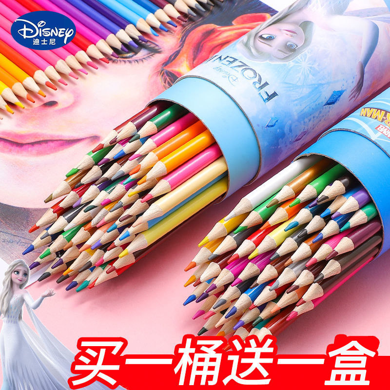 迪士尼彩色铅笔油性彩铅学生用专业手绘48色蜘蛛侠彩铅笔24色画画笔36色小学生安全冰雪奇缘绘画素描儿童铅笔