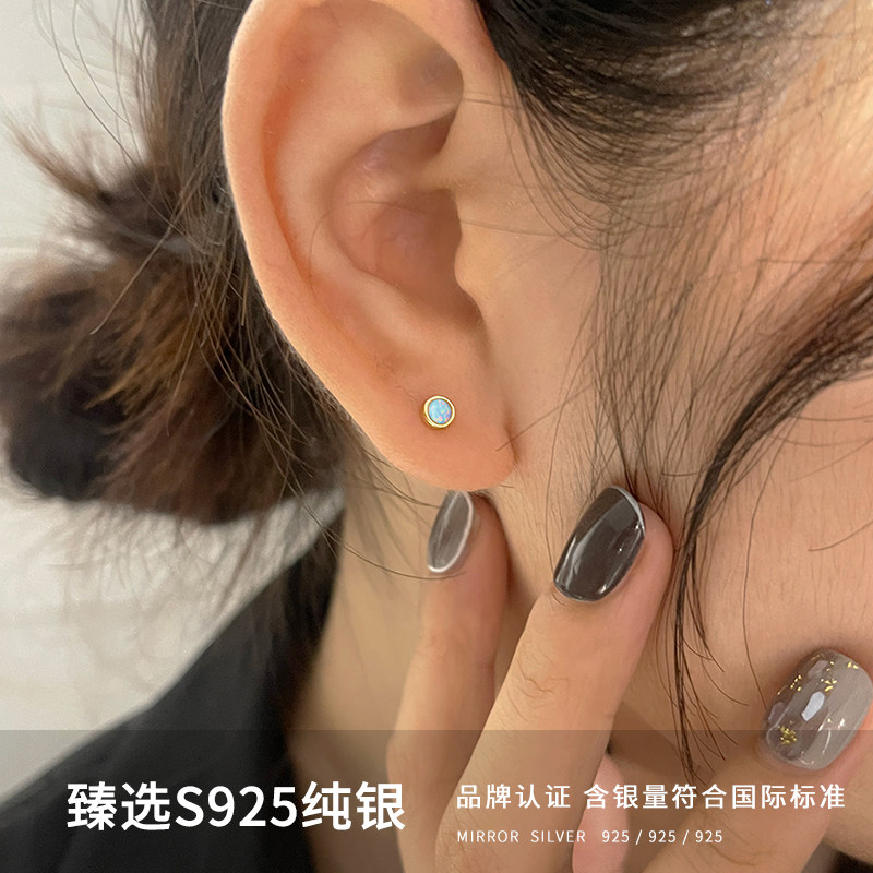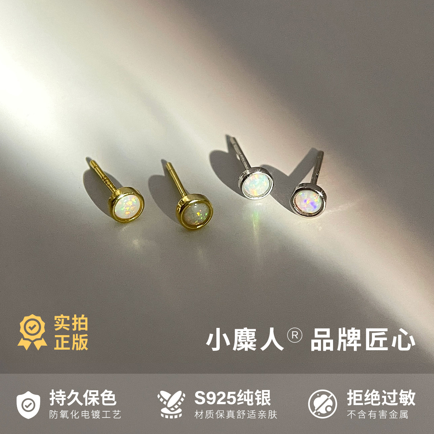 小麋人925纯银睡觉不用摘欧泊耳钉女款耳环圆圈小众设计耳饰精致