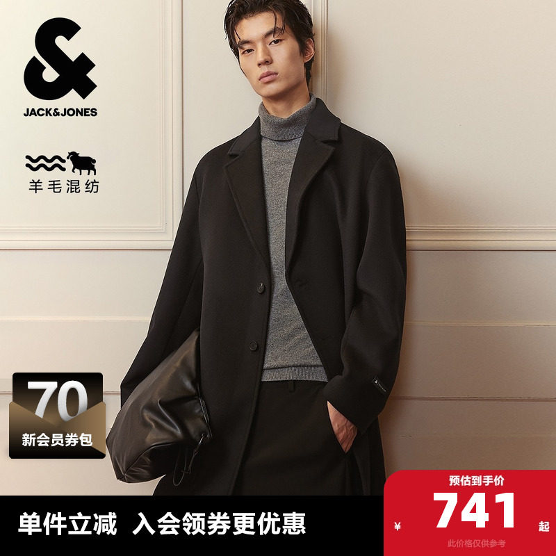 杰克琼斯毛呢大衣保暖外套时尚潮流宽松纽扣门襟双侧插袋百搭男装