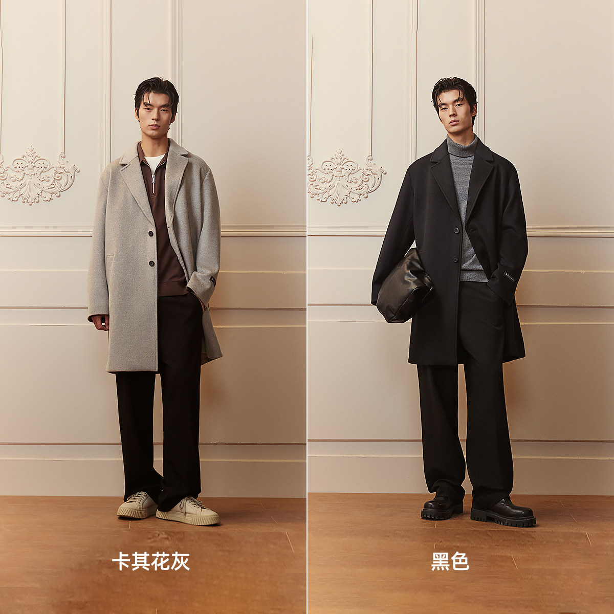 【100%绵羊毛】报喜鸟柴斯特斜纹中长款男大衣堑壕双面呢短款外套