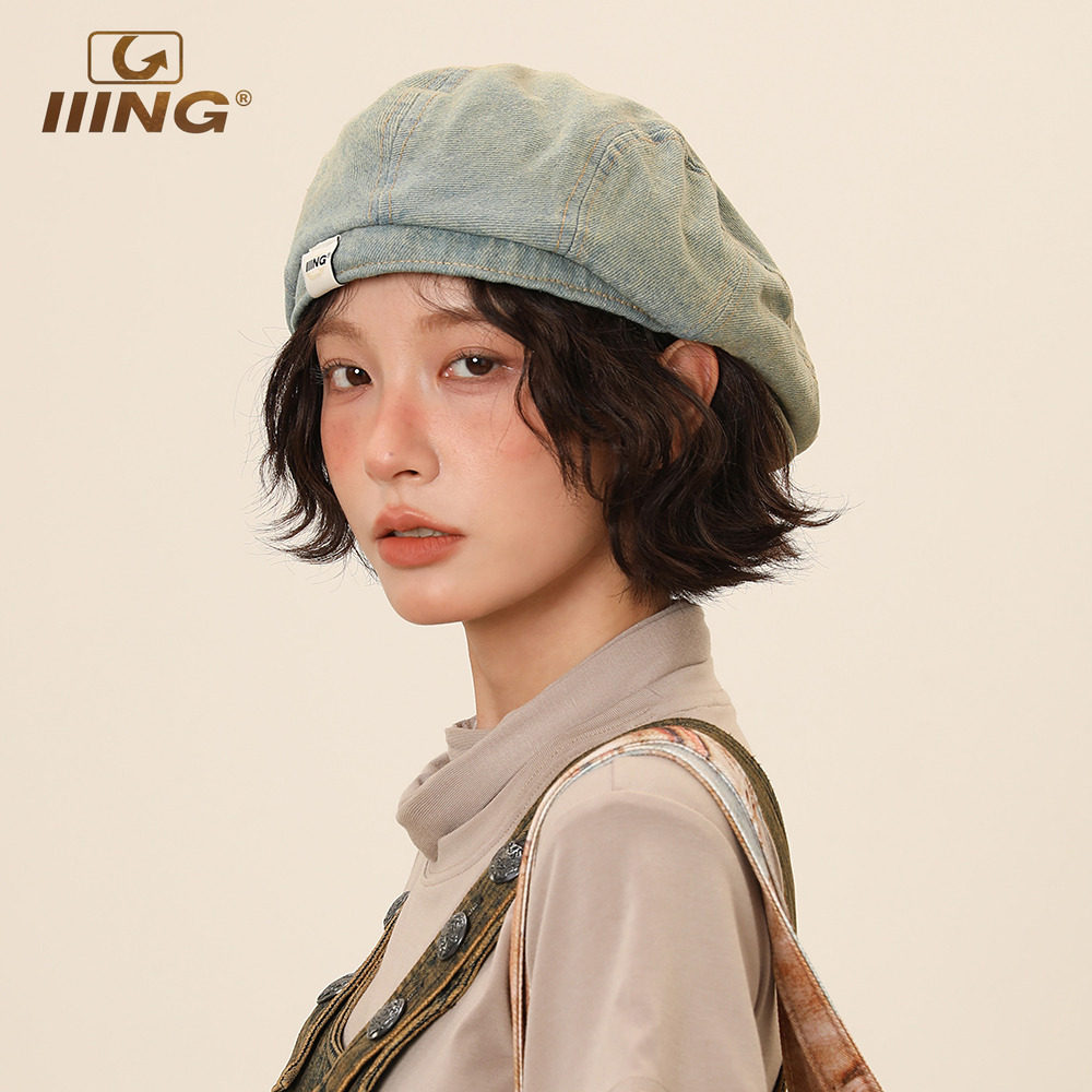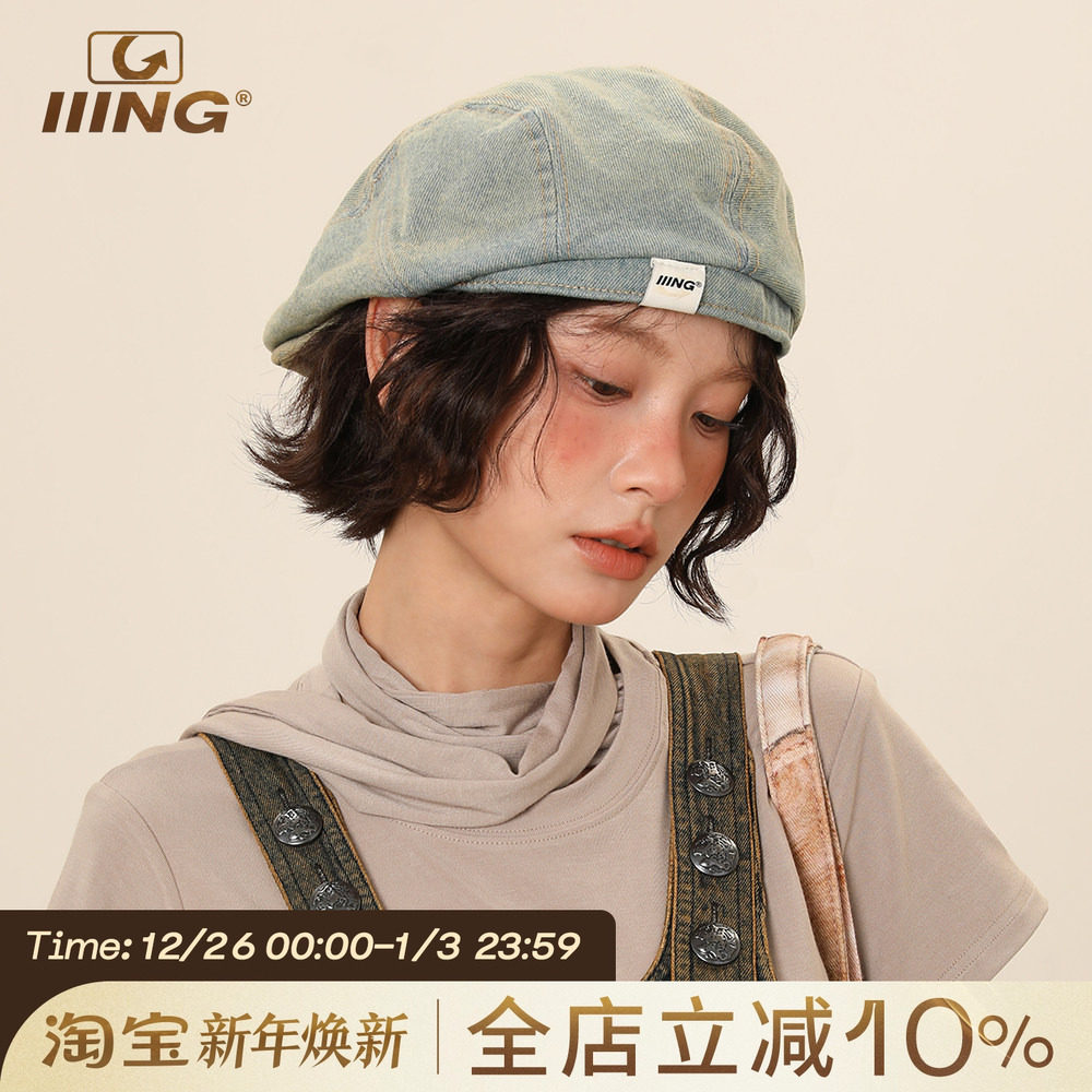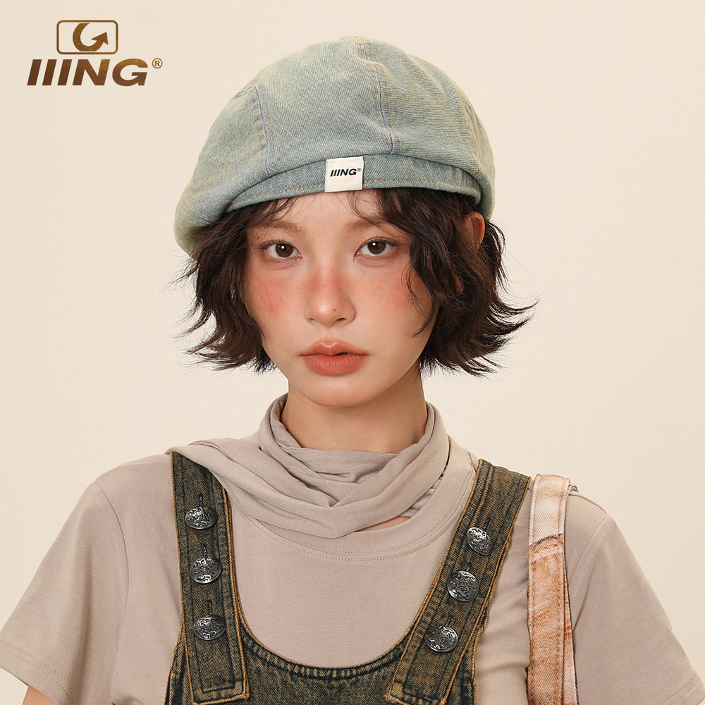 IIING帽控 复古水洗做旧牛仔前进帽子女时尚百搭显脸小反戴贝雷帽