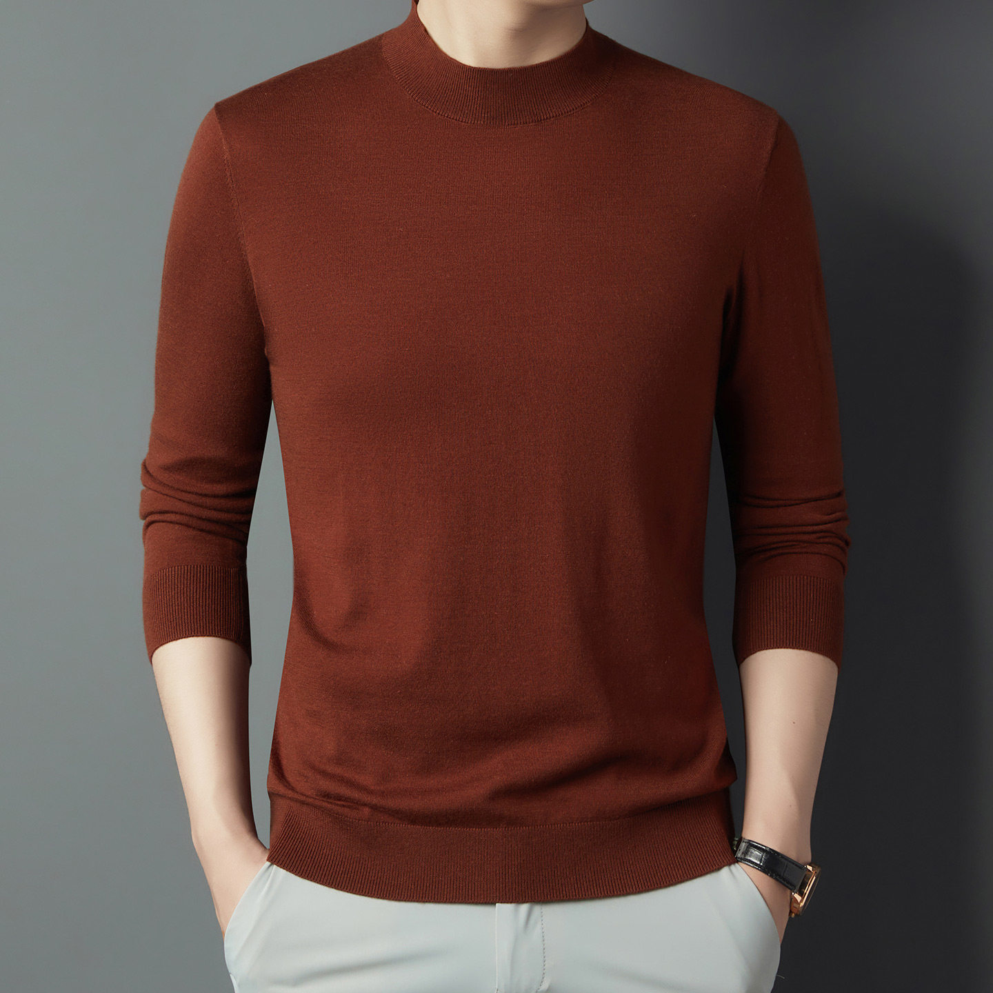 恒源祥男式秋冬半高领针织衫纯色长袖毛衣新款打底衫含羊毛套头衫