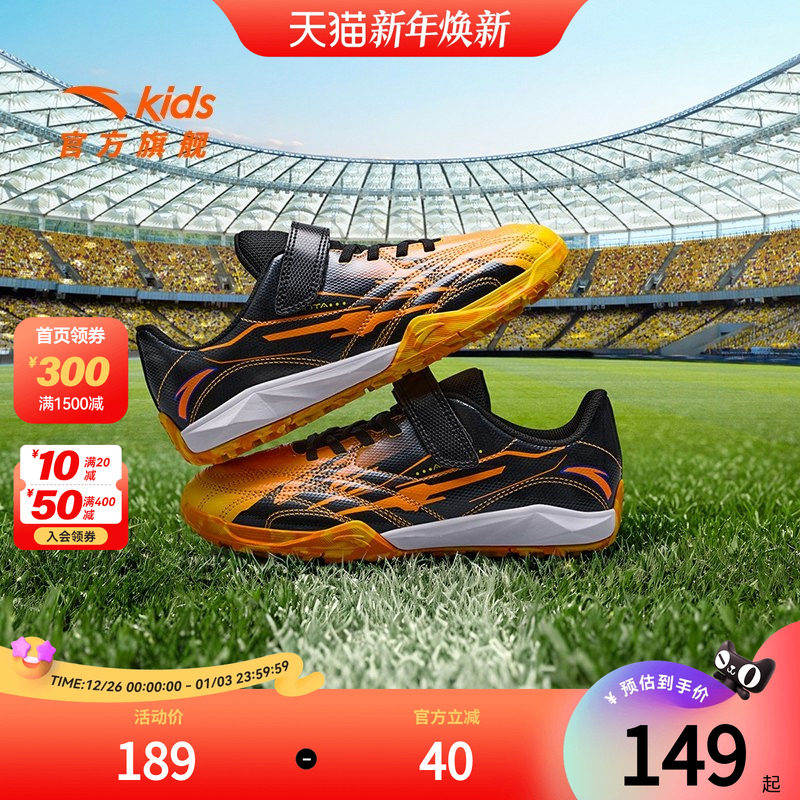 安踏儿童运动鞋男大童鞋2025秋季新品魔术贴碎钉防滑足球鞋综训鞋