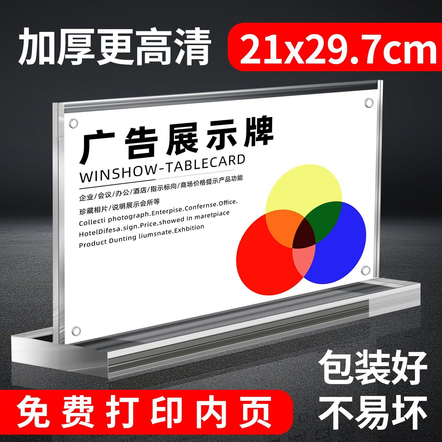磁吸亚克力桌面立牌a4强磁台签台卡加厚桌牌透明展示牌嘉宾会议牌座位人名桌卡姓名评委席卡双面广告价目台牌