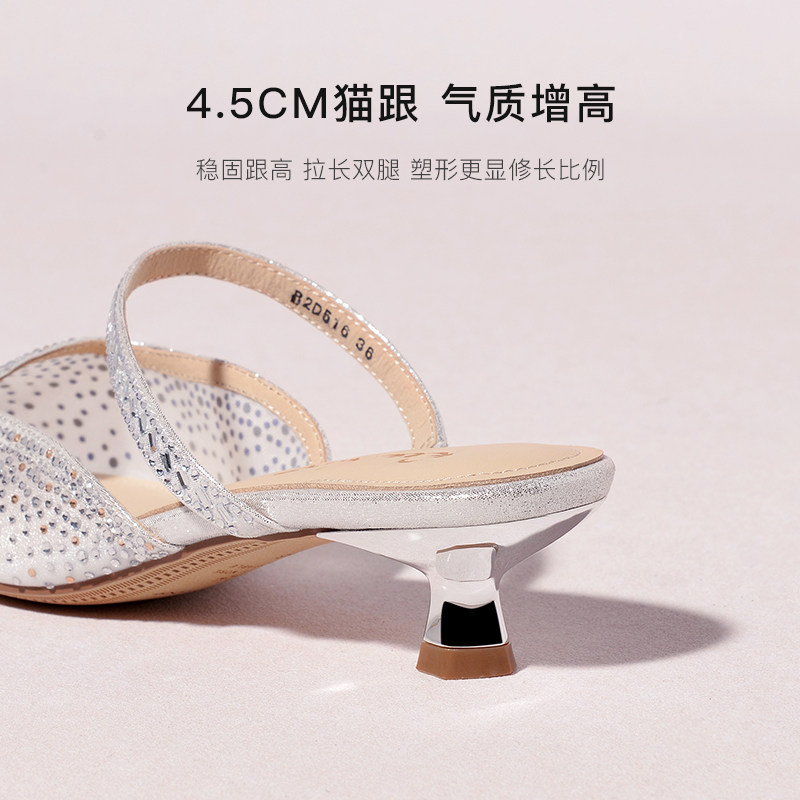 PVC透明凉鞋包头交叉水钻高跟鞋25春夏新款后空浅口甜美宴会婚鞋