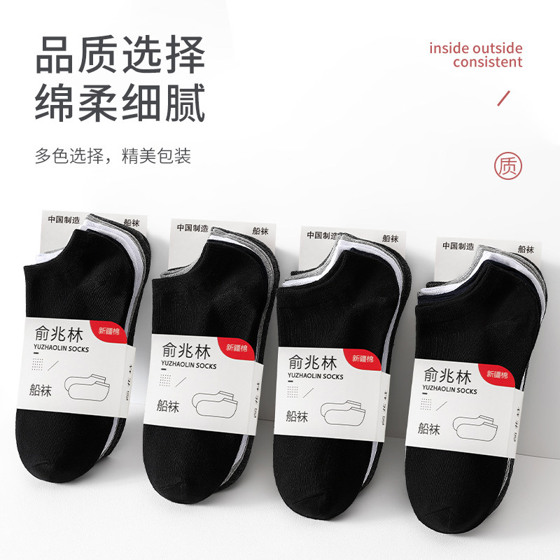 袜子男夏款短袜纯色防臭吸汗男士船袜夏季薄款男生黑白中筒袜夏天