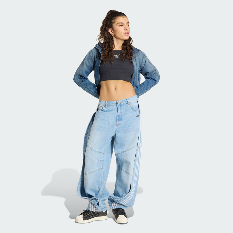 adidas阿迪达斯三叶草棉质宽松纽扣牛仔运动裤2026夏女长裤KY5188