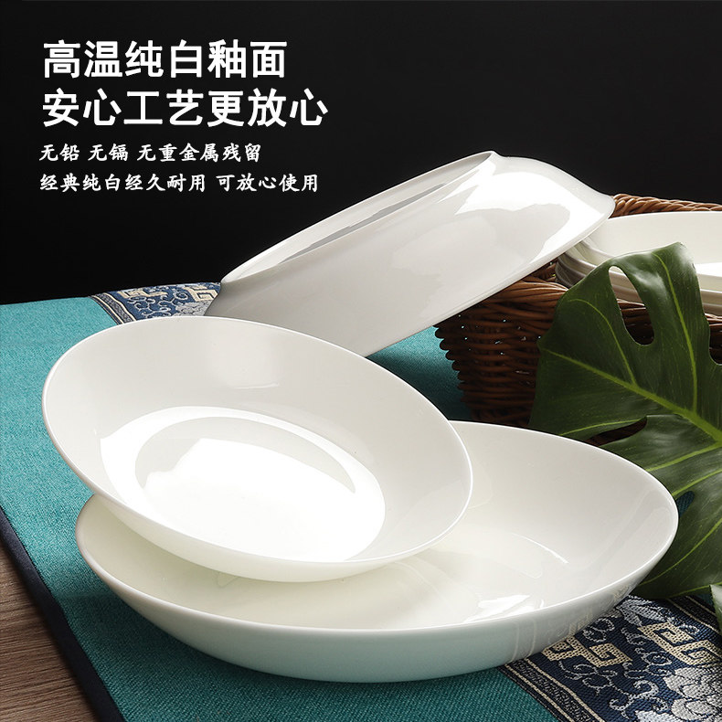 景德镇餐具深钵盘纯白无铅骨瓷饭碗新中式圆形RS炒菜深盘酒店家用
