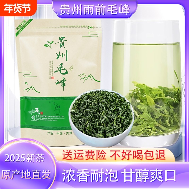 雨前浓香毛峰绿茶2025年新茶贵州高山云雾口粮茶湄潭耐泡炒青袋装