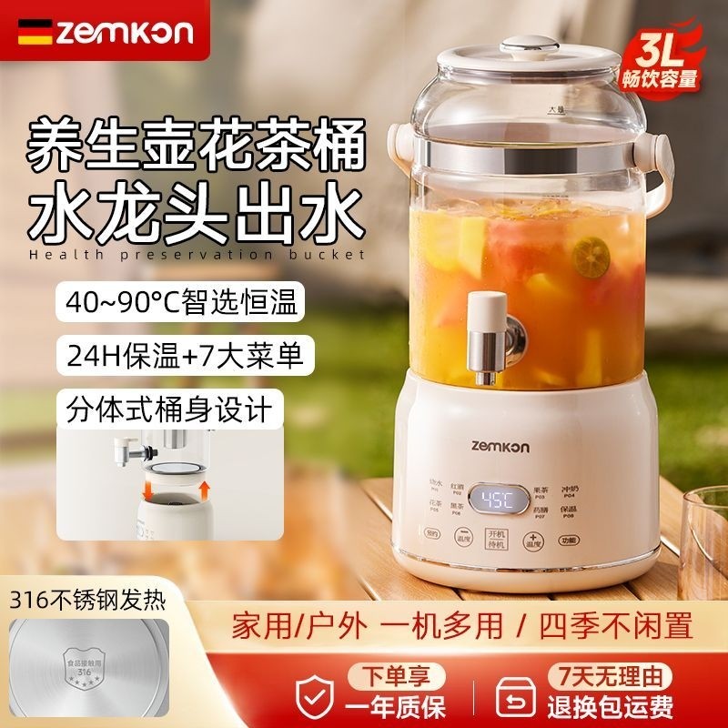 Zemkon养生壶炖煮一体大容量带煮茶壶2025新款烧水壶恒温玻璃保温