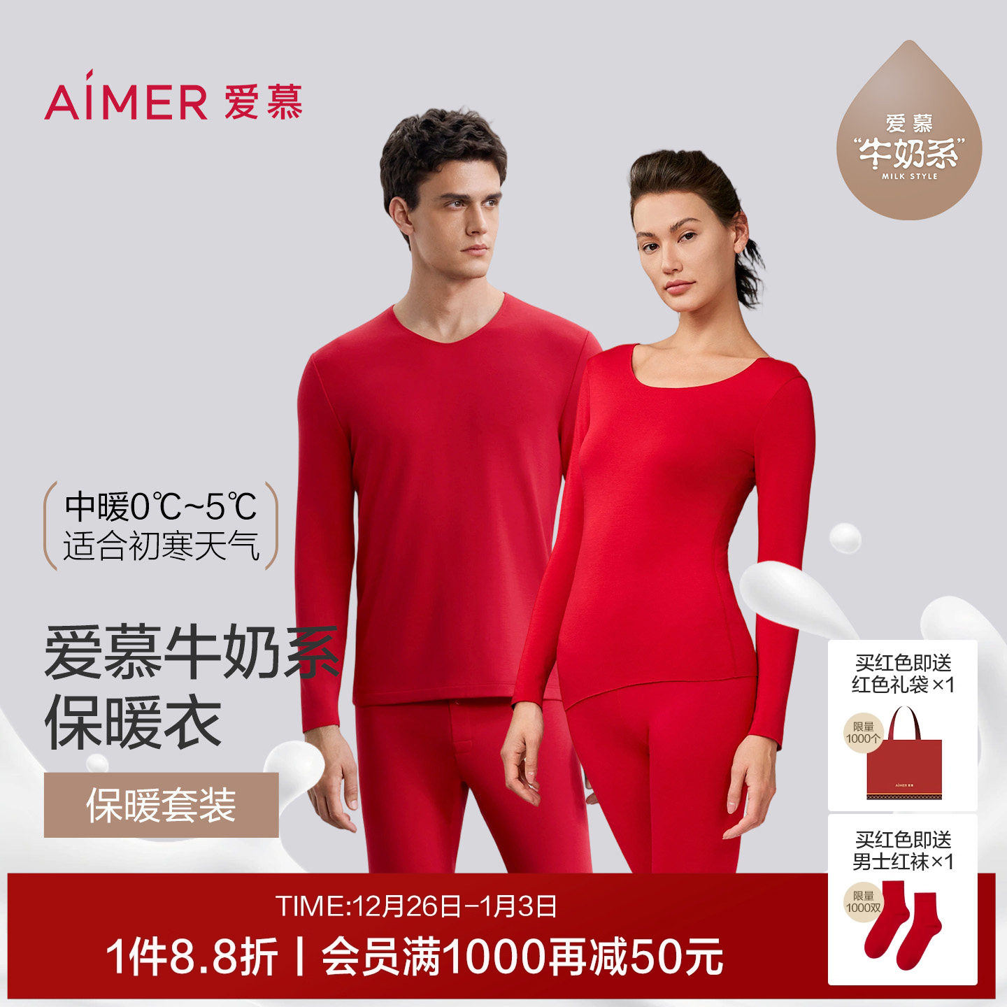 【牛奶系】爱慕秋冬本命年红品抗菌抗静电吸湿发热保暖套装秋衣裤