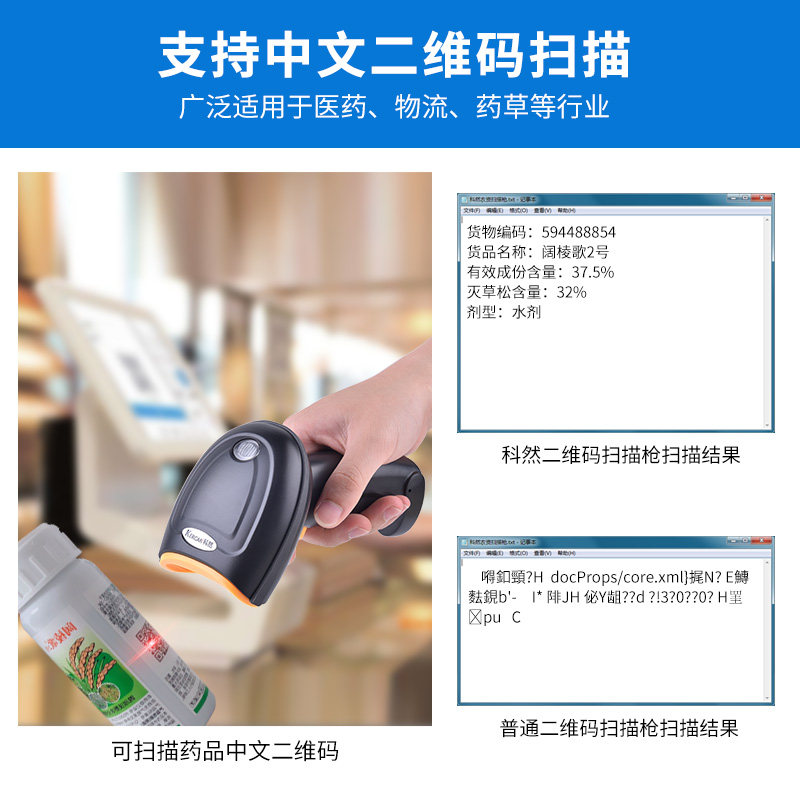 科然农资店兽药农药追溯扫码枪 二维码扫描枪无线扫描器中文打印