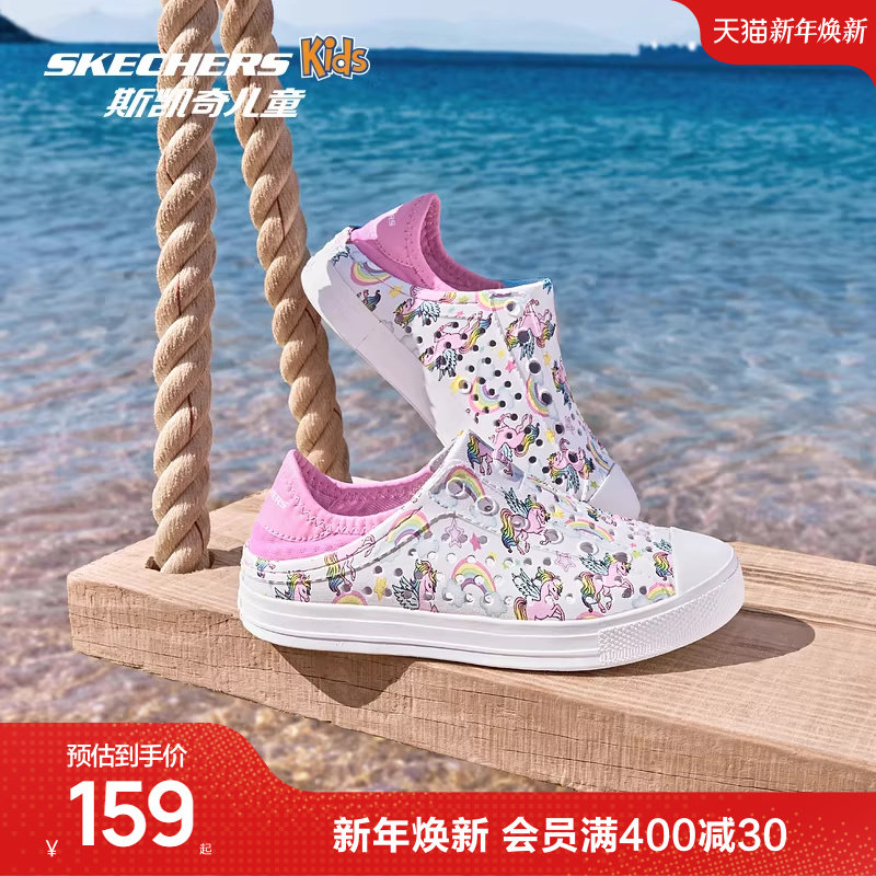 Skechers斯凯奇儿童夏季一脚蹬洞洞鞋女大童疏水透气轻便沙滩凉鞋