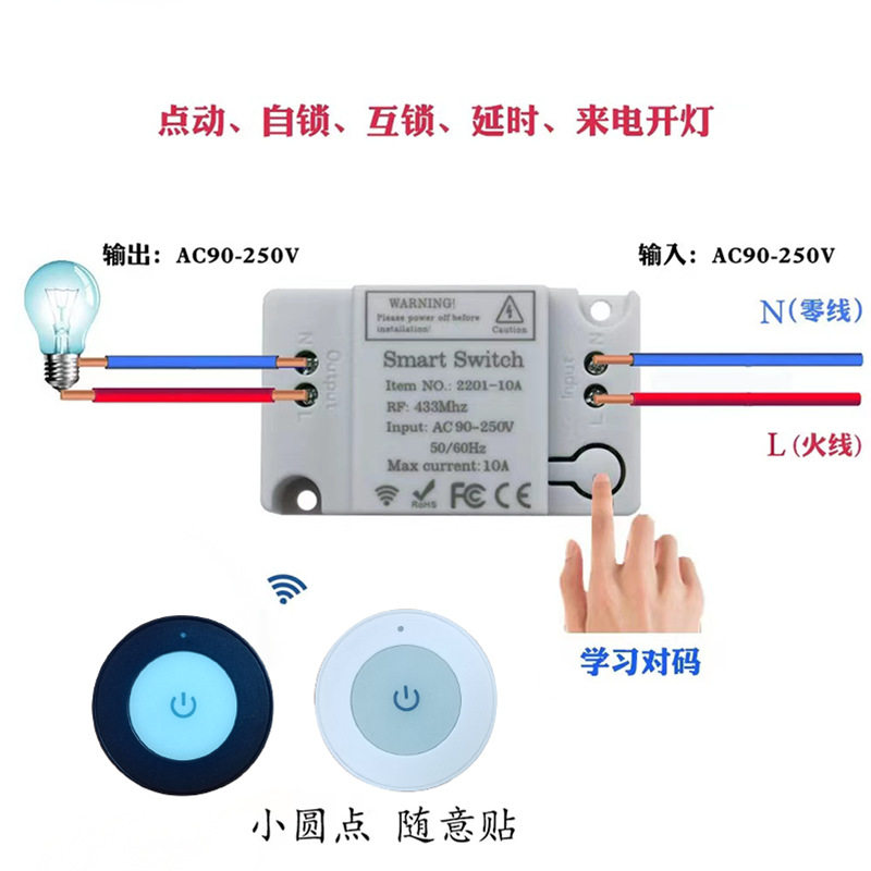 跨境RF433 家用免布线小圆随意贴220V迷你无线电灯开关模块通断器