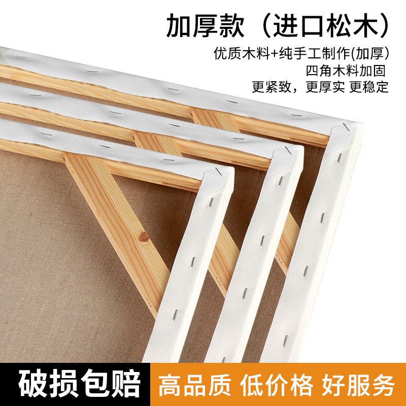 加厚油画框画布带框超大尺寸定制亚麻中粗纹雨露麻丙烯颜料油画布实木内框空白油画板专业油画画框批发定做