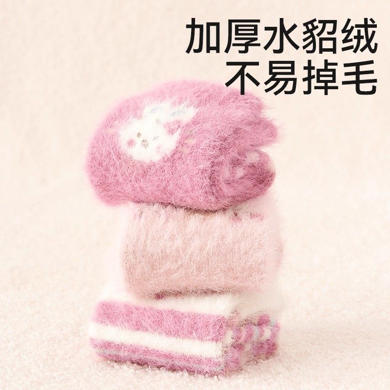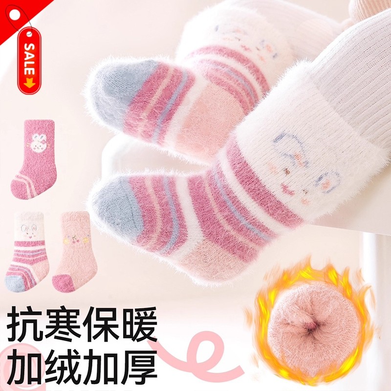 宝宝袜子冬季加绒加厚保暖袜新生儿秋冬水貂绒鞋袜婴儿地板袜毛圈