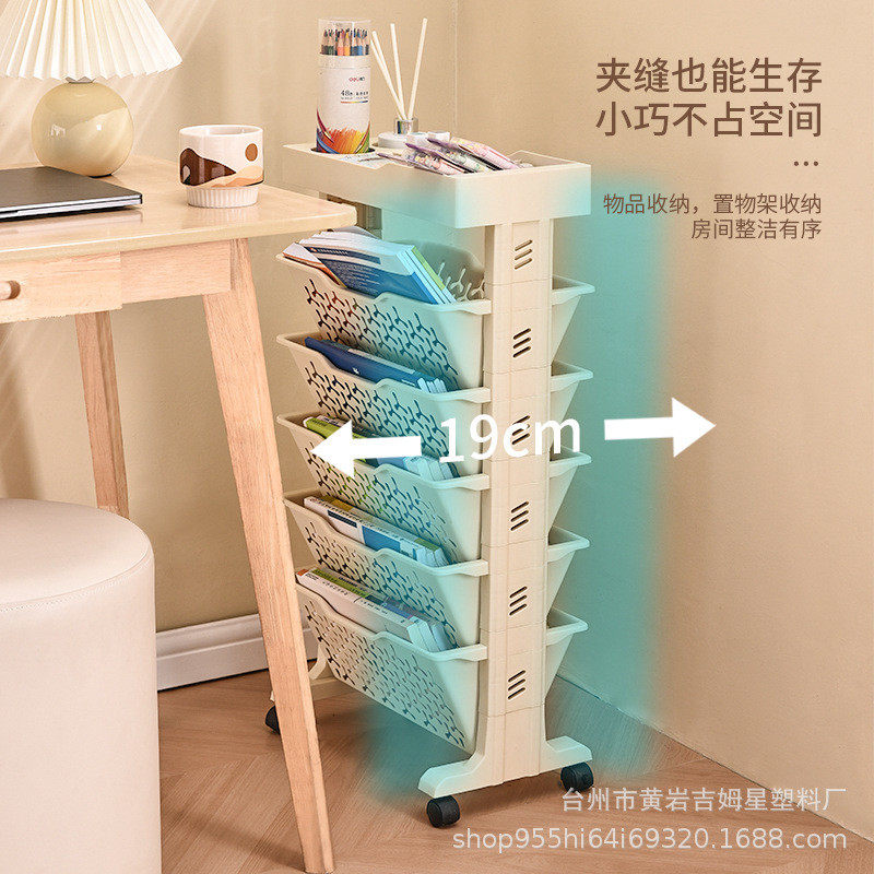 夹缝置物架落地带轮可移动书架儿童阅读书收纳架缝隙推车窄缝收纳
