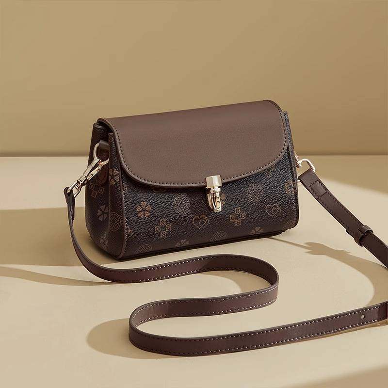 品牌女包轻奢复古老花单肩斜挎小包包2025新款高级感真皮小方包