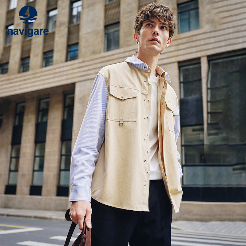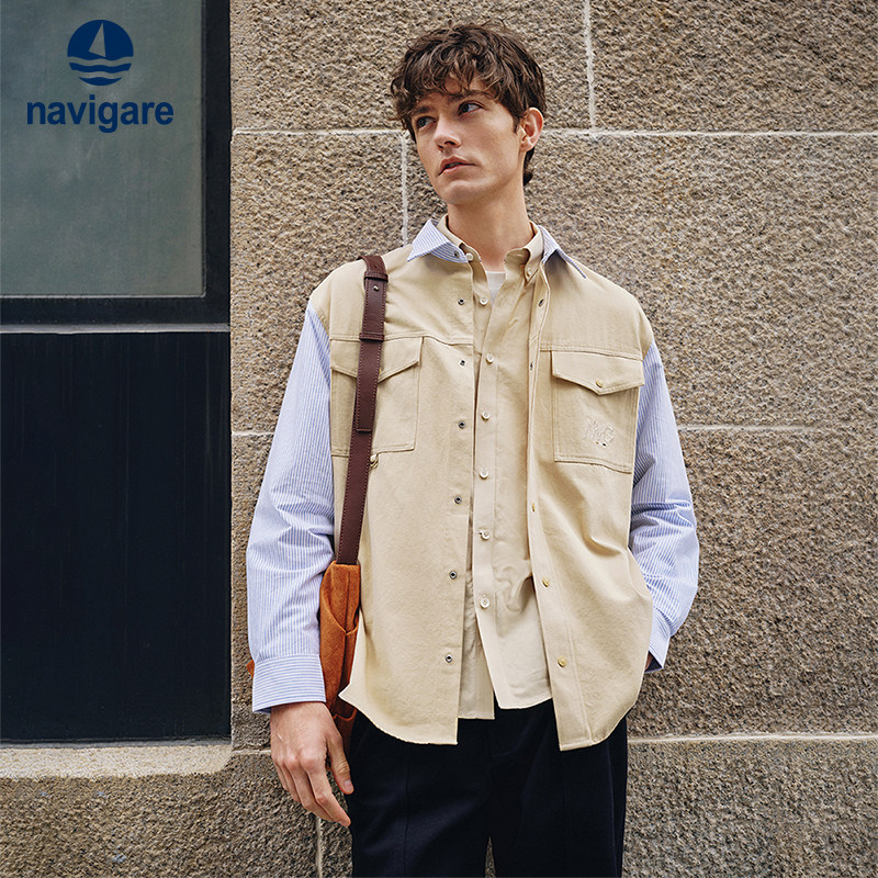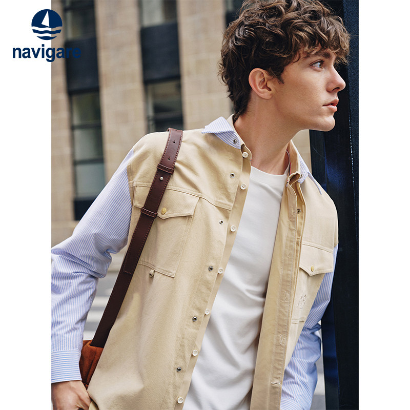 Navigare意大利小帆船巴恩风长袖衬衫男2025秋季新款纯棉工装衬衣