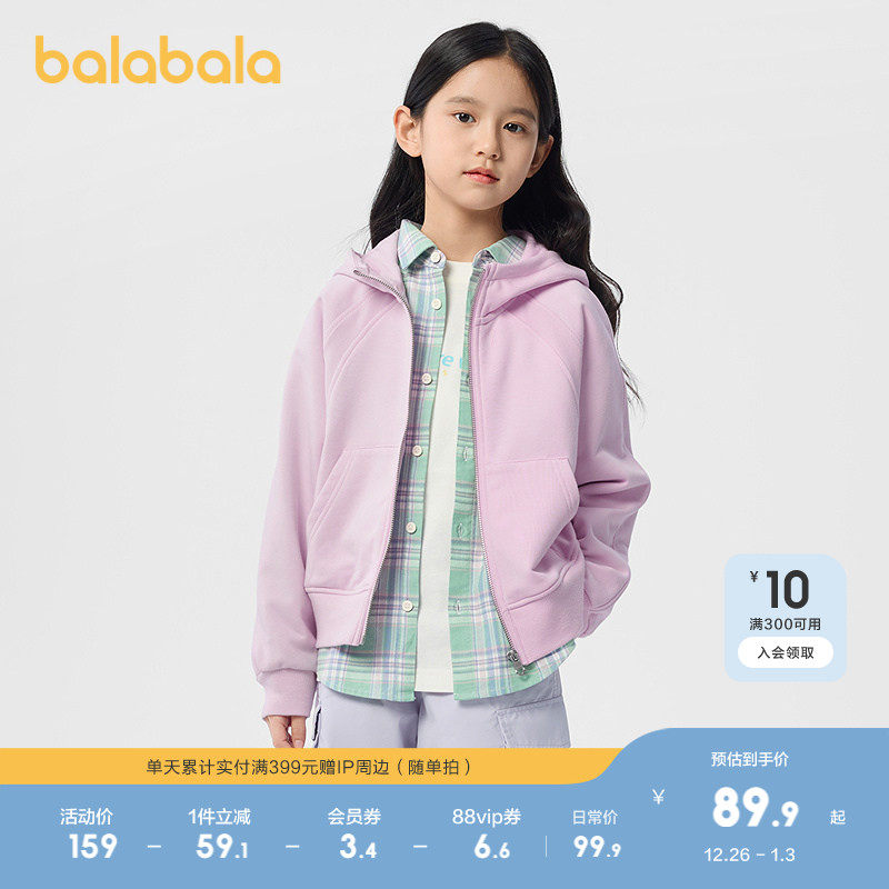 巴拉巴拉童装儿童外套男童春装女童百搭卫衣开衫连帽时尚绣花精致