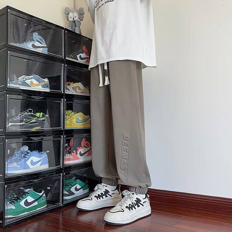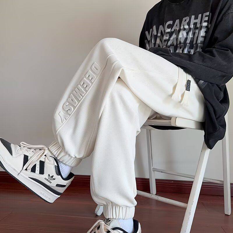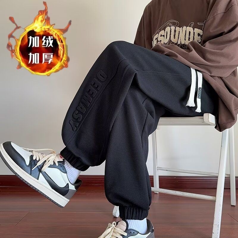 休闲裤男2025新款宽松韩版潮流裤子冬季加绒加厚坠感阔腿拖地长裤
